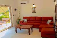 Thoughtfully designed and built by the owner, this bijou villa has two bedrooms, each with their own shower room (one en suite), and to the front a lovely, light, open plan space with zones for relaxing, dining and cooking. Full width patio doors slide open so the indoor merges with the terrace, with wide steps leading down to the pool area.