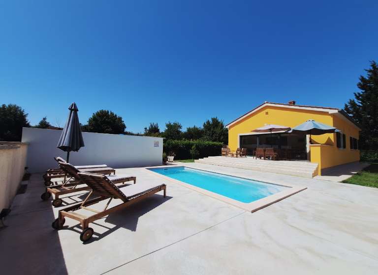 A cheery bright yellow facade greets you on arrival at Casa Alice, a perfectly formed two bedroom villa with pool, situated on the edge of Sisan (750m), a traditional village with restaurants and shop, at the southern end of Istria. With amenities on the doorstep, sea and beaches nearby (4km) and history and culture a short drive away in Pula (8km), Casa Alice is the ideal place for a couple or family seeking a holiday where everything is close at hand.