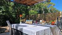 The beautiful accommodation is one of 12 small villas in the grounds of the chateau boasting cool tiled floors in a local travertine stone and excellent facilities. Located towards the end of the residence and surrounding woodland Sartena will suit couples and families wanting a lovely base from which to explore this beautiful and varied part of the Languedoc. The spacious grounds and splendid shared swimming pool is open mid May to mid September.