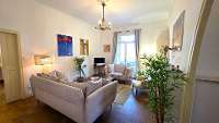 The Wine Terrace is a wonderfully renovated spacious first floor apartment accessed via a courtyard with stone stairs. An entrance hall leads directly into the kitchen and living room that features a central fireplace (ornamental only). There are two spacious bedrooms on this floor and a third smaller bedroom on an upper floor. Outside is a very large private first floor terrace for relaxing, sunbathing and eating, with lovely views over the shared grounds to the vine covered slopes beyond.