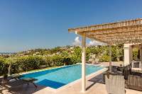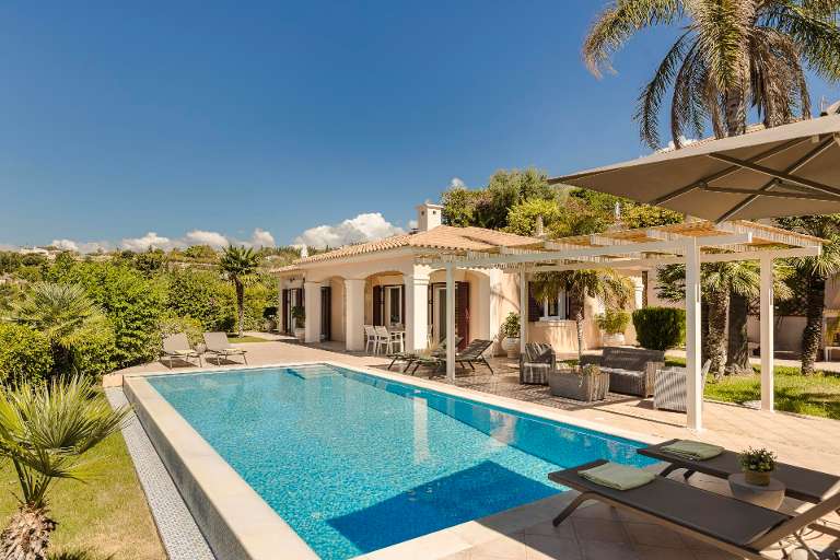 Where Dina comes into its own is outdoors. Framed by rolling countryside and sea views, the villa’s terrace boasts a sparkling infinity pool, a tranquil spot to while away the day, book in hand or simply soaking up the sun. A shaded pergola offers a delightful setting for breakfast, long lunches or evenings under the stars. Fire up the in built barbecue and enjoy fresh local produce as the sun dips below the horizon.