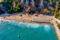 Aviathos Beach, is just a five-minute drive from the villa and is one of the island’s most beloved. Here, soft sands meet clear turquoise waters, ideal for swimming, paddling, and lazy afternoons. Sunbeds and umbrellas are available to hire, and you’ll find a handful of charming beach bars for refreshments with a view. If you're lucky, a loggerhead turtle might make an appearance!