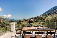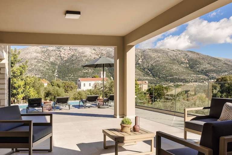 Perched on a hillside close to the traditional village of Makryotika, Kanelo is a brand new stone villa offering a peaceful escape with sweeping views across the valley, over to Agia Efimia and out to the sea. Blending the charm of traditional Kefalonian architecture with bright, modern interiors, the house is designed for those seeking comfort, space and the gentle rhythm of village life.