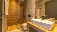 The modern single-story property, offers three bedrooms, each their own en suite shower room. Two double bedrooms and one twin all enjoy direct access to the pool terrace where you can wake to sunshine, step outside, and let the sea views accompany your first coffee of the day.