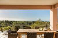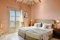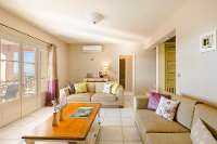 Inside, Nikolas is spread across two levels and has been thoughtfully designed for comfort and space. On the ground floor, an open-plan living and dining area opens onto the terrace, while a well-equipped kitchen and a twin bedroom with ensuite provide all the conveniences of home. Upstairs, you'll find two further bedrooms, one double and one twin, each with their own ensuite and direct access to a shared balcony, offering far-reaching sea views.