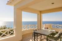 - First Floor: Accessed via spiral staircase. Open plan living room (A/C, Smart TV, WiFi) with doors to balcony with sea views. Kitchen (oven, microwave, dishwasher) with dining area. Utility room (washing machine). Cloakroom. Door to rear of property provides access down to the outdoor barbecue and pool area.