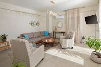 - Outside: Sun terrace. Shower. Barbecue. Private parking. Lawned garden.