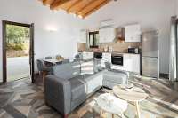 Villa Harys itself has been thoughtfully shaped by its caring owners, who have devoted considerable time and hard work to creating a warm and comfortable home-from-home. Their pride is evident in the details: inviting furnishings, carefully chosen furniture and, most notably, the lovingly installed private swimming pool. Surrounded by olive groves and open views, the pool offers a peaceful spot to cool off from the Greek sunshine, reflect on the day’s adventures or simply enjoy the gentle rustle of the trees.