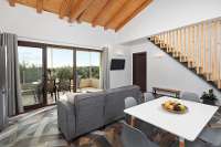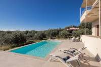 Light, welcoming interiors flow out to a series of outdoor spaces where you can unwind at your own pace. From the first-floor balcony, vistas stretch across the mature olives towards the blue horizon, an idyllic place to begin the day with morning coffee or wind down as the evening light fades.