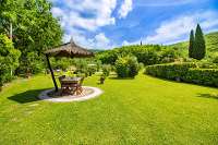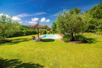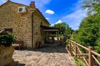 Beautifully maintained by the proud owners, the garden is a real delight. Enclosed by a deep hedge on one side, there are olive trees, flowers, strategically placed straw topped parasols and, surrounded by the vast expanse of lawn, the all important swimming pool. Alfresco outdoor seating has not been forgotten, with a stone tiled area in the garden for dining and a covered terrace by the cottage, overlooking the brook below and the woodland beyond. With the backdrop of the tree lined hills, the garden of La Casetta Carina is a lovely place to while away the days.