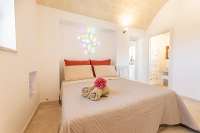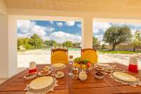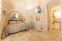 The owners have thoughtfully built a great barbecue and wood oven to one side, close to the shaded covered area with its typical vaulted ceiling. More vaulted ceilings can be found in the kitchen diner and one of the bedrooms, creating bright and airy rooms. The style changes as you walk from the first bedroom into the second bedroom in the trullo, where the golden stone work can be seen in all its glory. This bedroom can also be accessed externally, ideal for those seeking an early morning swim.