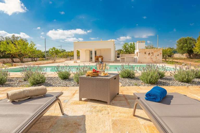Close to the ‘gastronomic capital’ of Puglia, Ceglie Messapica (2.5km), Pietra Dorata sits within spacious grounds, surrounded by a beautiful terrace created from the warm hued local stone, conducive to those all-important holiday pastimes of relaxing, sunbathing, and alfresco dining overlooking the fabulous pool.