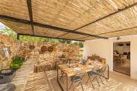 The interior is elegantly minimal, balancing rustic authenticity and modern refinement. Stone arches, original details, and soft natural tones define warm, inviting spaces designed for slow living. The layout is ideal for two couples or friends: the bedrooms - each with en suite shower room and independent access - are located within the two trulli, set off the central courtyard. Between the two trulli is a separate shower room, accessed independently. Directly opposite sits the main dwelling which is home to the living areas (kitchen, dining and living) leading out to a delightful, covered dining terrace made for relaxed living - dining al fresco, enjoying a glass of local wine, reading a book or playing cards.