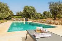 Outside, nature really does take centre stage. A striking private pool sits at the heart of the grounds, surrounded by prettily planted stepped terraces, borders of lavender and low stone walls, all nestled amongst the olive trees.