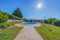 Easy on the eye, the shaped private pool and sun terrace are focal points. Mature shrubs and a high wall guard poolside privacy while Roman steps into the shallow end make for easy access.