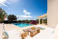 In a prime location, just 700m from the sandy cove of Binibeca with its waterfront restaurant and fine golden sands, this elegant coastal home instantly delighted our inspecting team as we were welcomed into its flower-filled Mediterranean grounds. As we then progressed inside into a light interior of tastefully neutral tones, we could not imagine a more stylish and restful ambience in which to enjoy a holiday by the sea