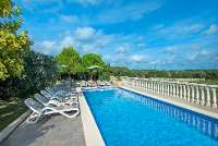 The result is a light and restful ambience which will not fail to delight and which is also apparent outside in the attractive grounds. Beyond the traditional façade of whitewashed walls and green shuttered windows, a smooth terrace of modern design leads the way to the swimming pool, via a covered outdoor dining area. Stretching out ahead and forming the most pleasing of backdrops is a rural scene of stone-walled fields dotted with the lush greenery of shrubs and bushes.
